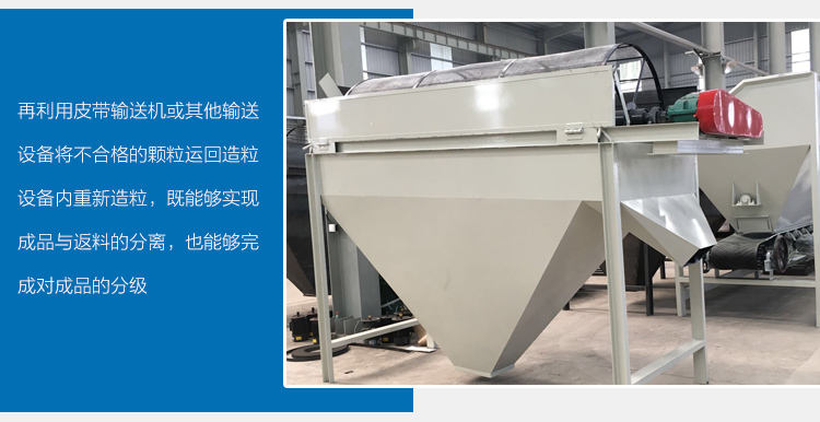 有機肥滾筒篩分機是生產顆粒有機肥生產線中的設備之一,其利用了分選技術,從進料端到出料端采用不同目數的篩網,可將有機肥中不合格的顆粒篩分除雜,再利用皮帶輸送機或其他輸送設備將不合格的顆粒運回造粒設備內重新造粒,既能夠實現成品與返料的分離,也能夠完成對成品的分級,使成立粒度更加均勻,適用于300mm以下個各種固體顆粒篩分。