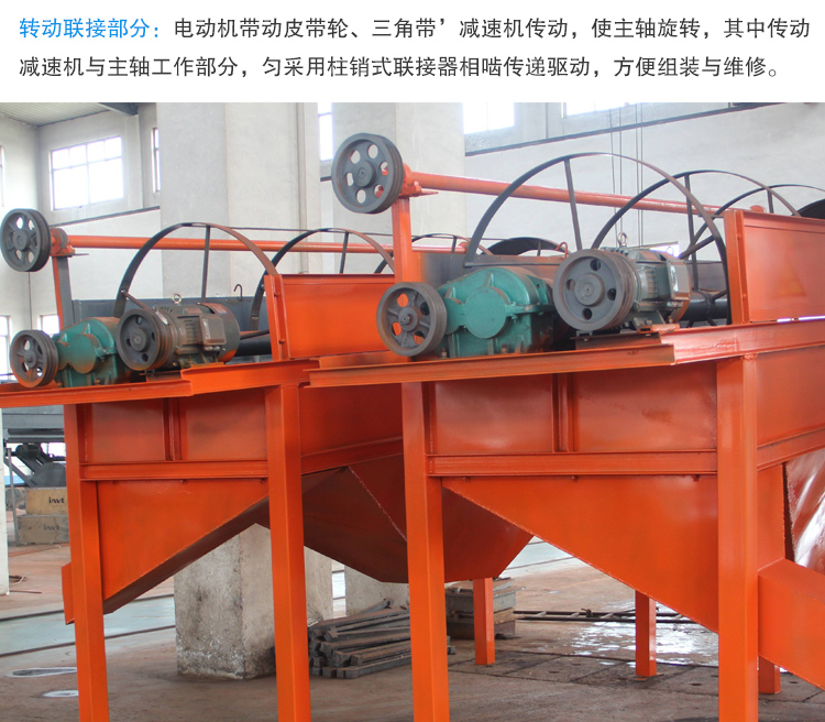 轉動聯接部分:電動機帶動皮帶輪、三角帶’減速機傳動,使主軸旋轉,其中傳動減速機與主軸工作部分,勻采用柱銷式聯接器相嚙傳遞驅動,方便組裝與維修。